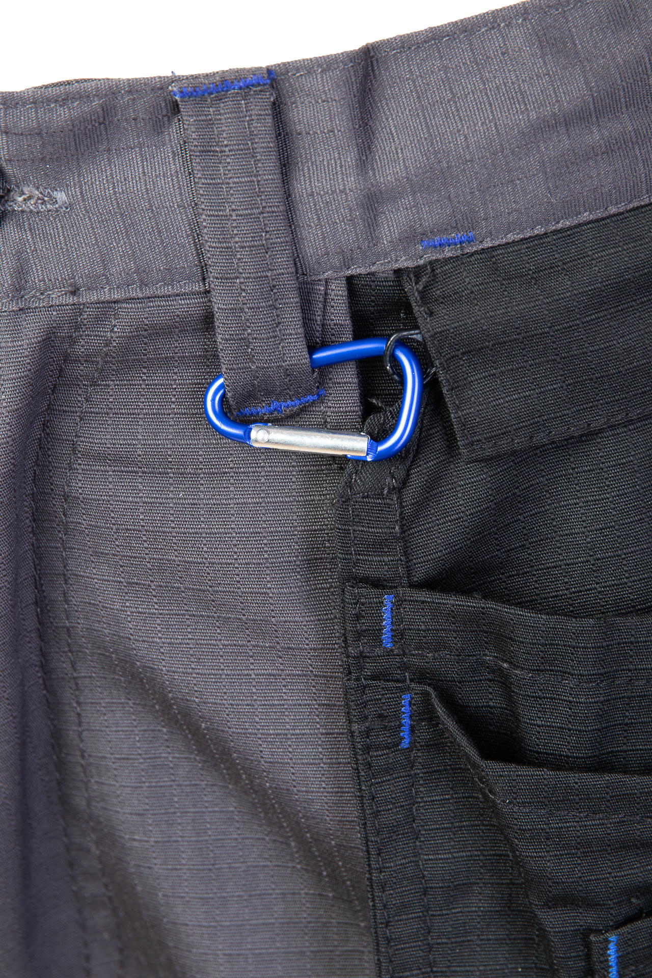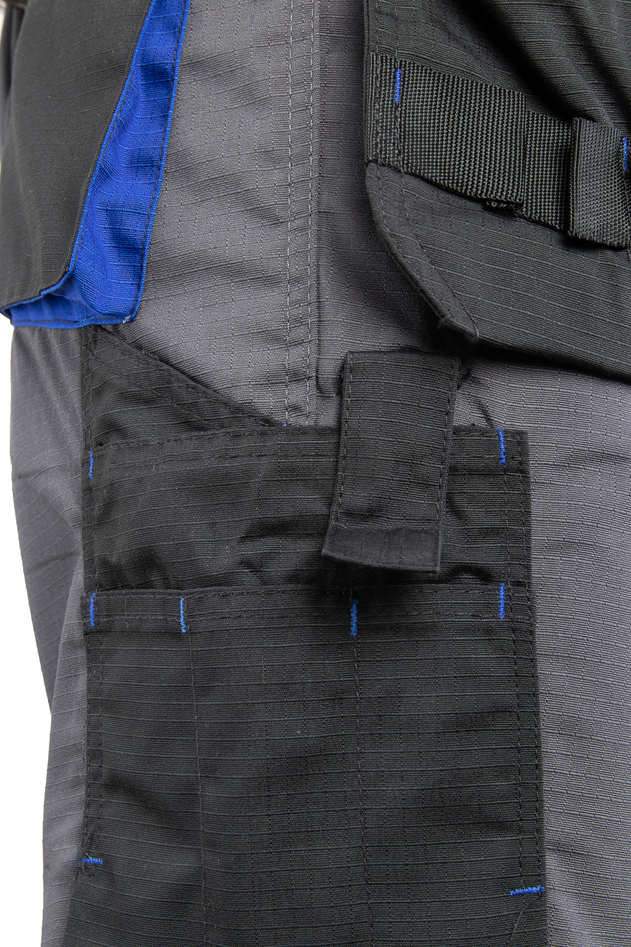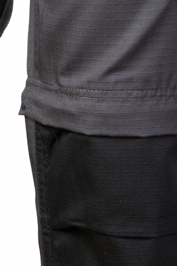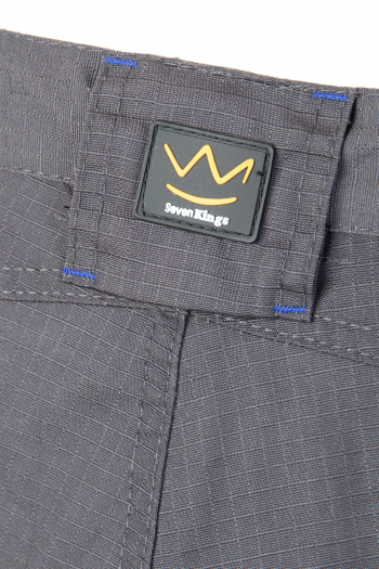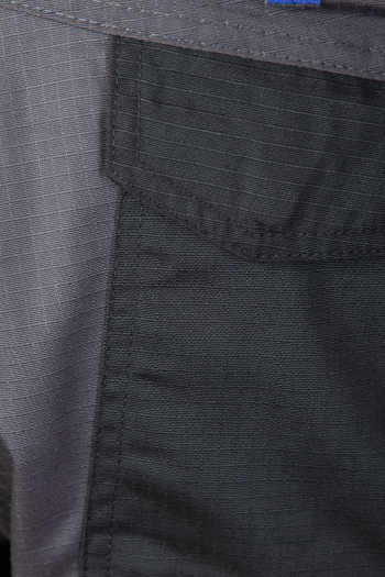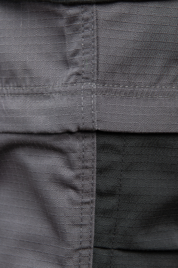 Spodnie wykonane z tkaniny o charakterystycznej fakturze kratki (6x6mm), wzmocnionej poprzez dodanie w stałych odstępach mocniejszych włókien (materiał typu rip-stop), co zapobiega rozdzieraniu się materiału.