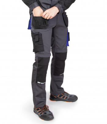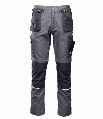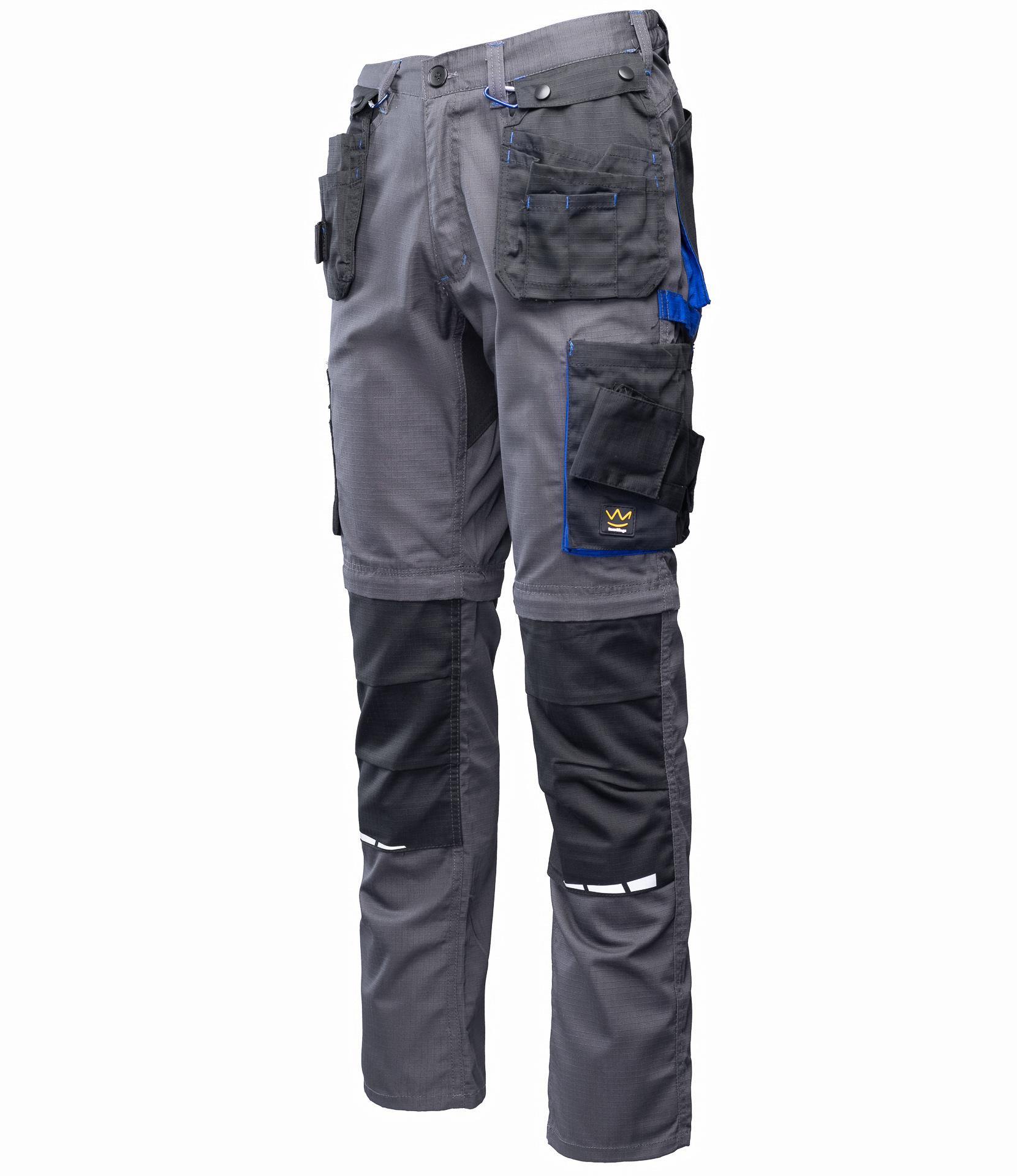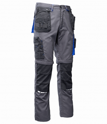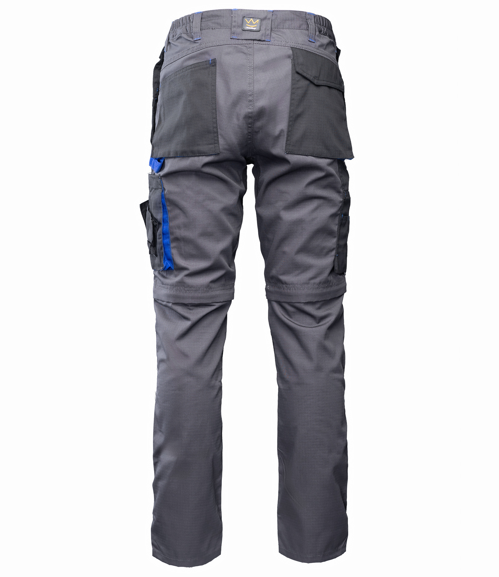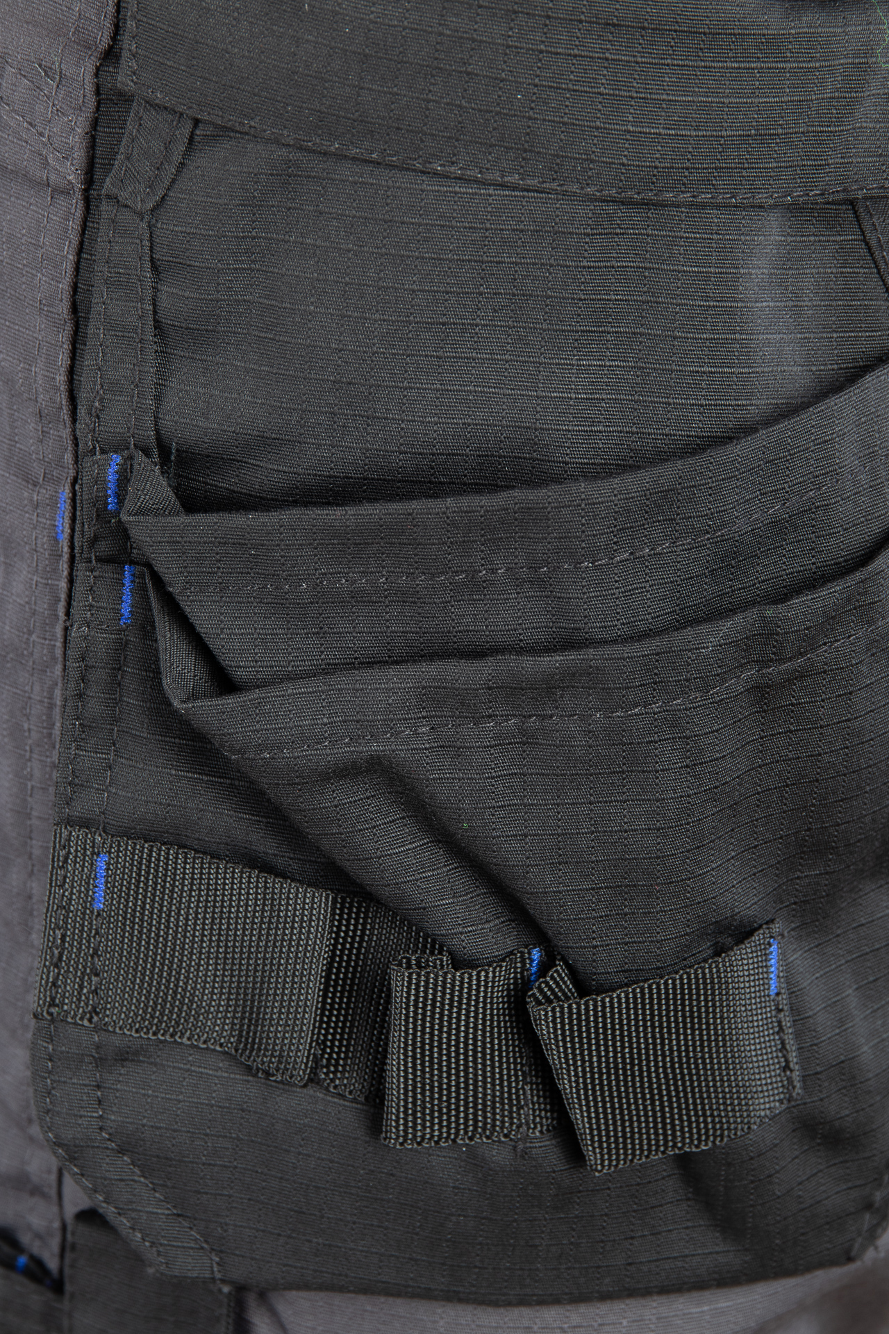 Spodnie wykonane z tkaniny o charakterystycznej fakturze kratki (6x6mm), wzmocnionej poprzez dodanie w stałych odstępach mocniejszych włókien (materiał typu rip-stop), co zapobiega rozdzieraniu się materiału.