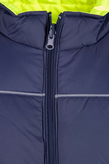 na stronie jaskrawej dwie kieszenie zapinane na zamek, zakryte listwą,