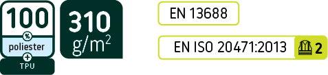 • podwójne pasy odblaskowe przeszyte podwójnymi szwami,