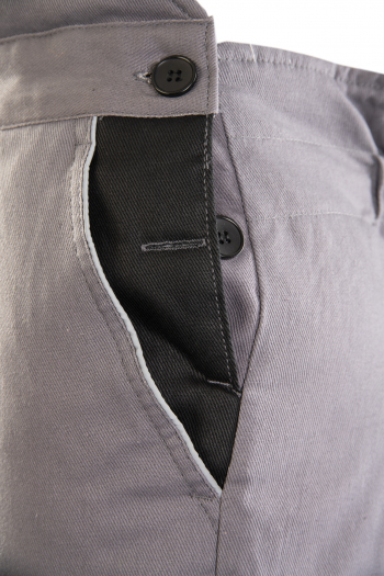 • za pomocą guzików oraz gumki wszytej w tylnej części spodni,