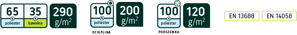 65% poliester/ 35% bawełna, gramatura 290 g/m2,