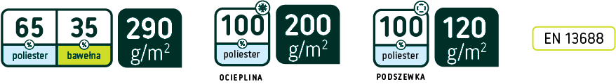 Materiał: 65% poliester/ 35% bawełna, gramatura 290 g/m2,