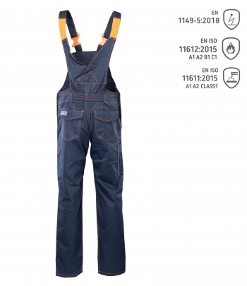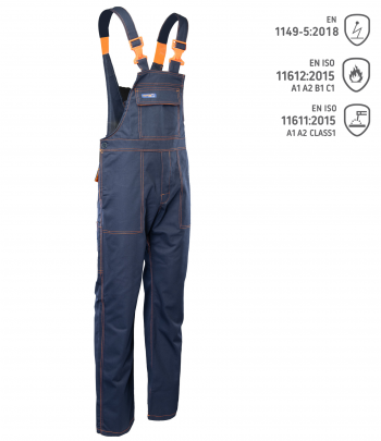 EN ISO 11612:2015 A1 A2 B1 C1 , EN ISO 11611:2015 A1 A2 CLASS 1 , EN 1149-5:2018 , EN ISO 13688:2013