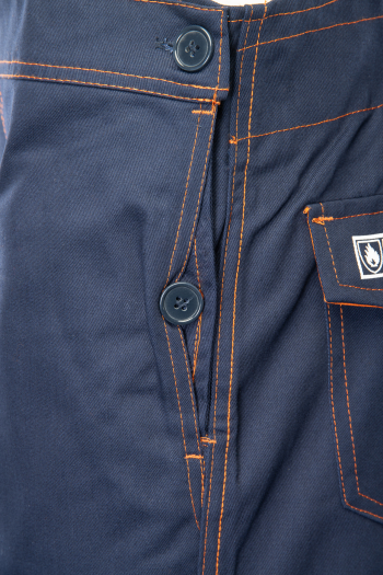 możliwość regulacji w pasie za pomocą guzików oraz gumki wszytej w tylnej części spodni,