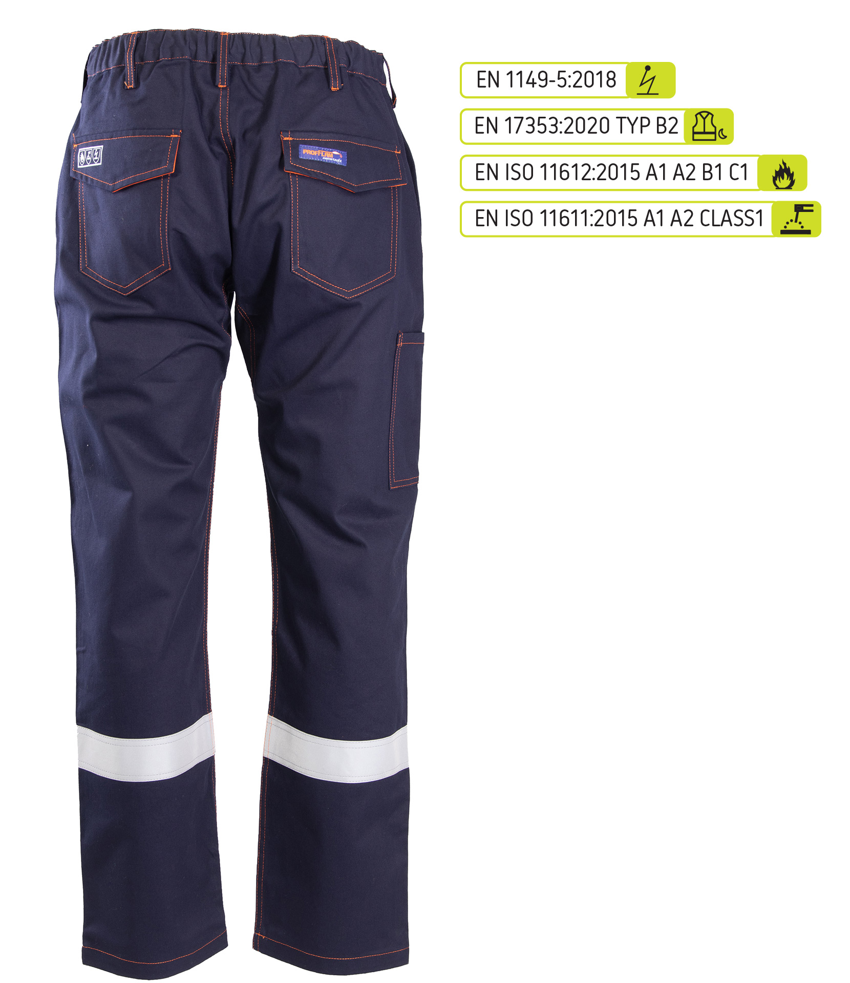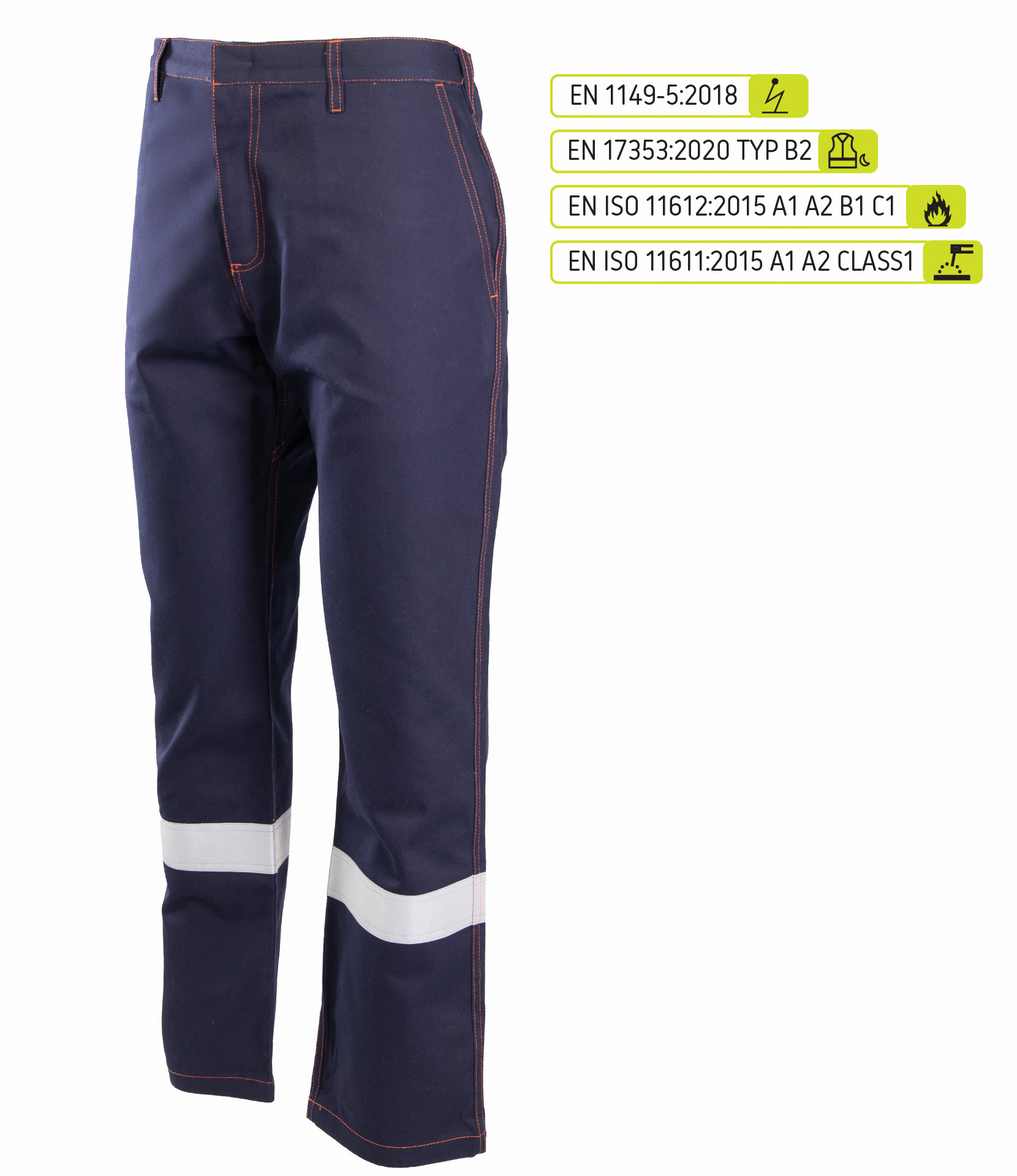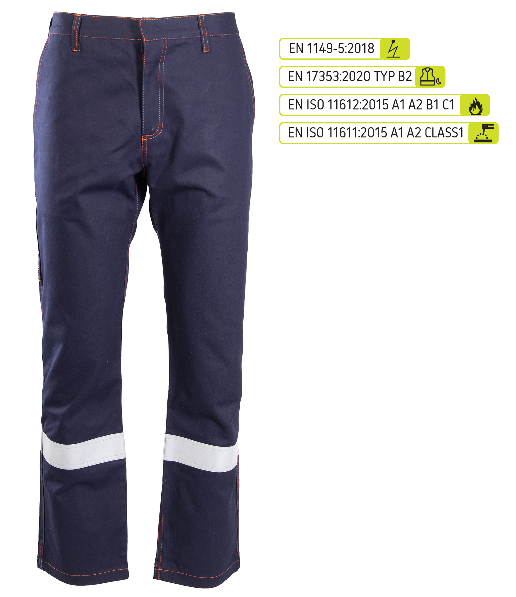 EN 1149-5:2018 , EN ISO 11611:2015 A1 A2 CLASS 1 , EN 17353:2020 TYP B2 , EN ISO 11612:2015 A1 A2 B1 C1 , EN ISO 13688:2013