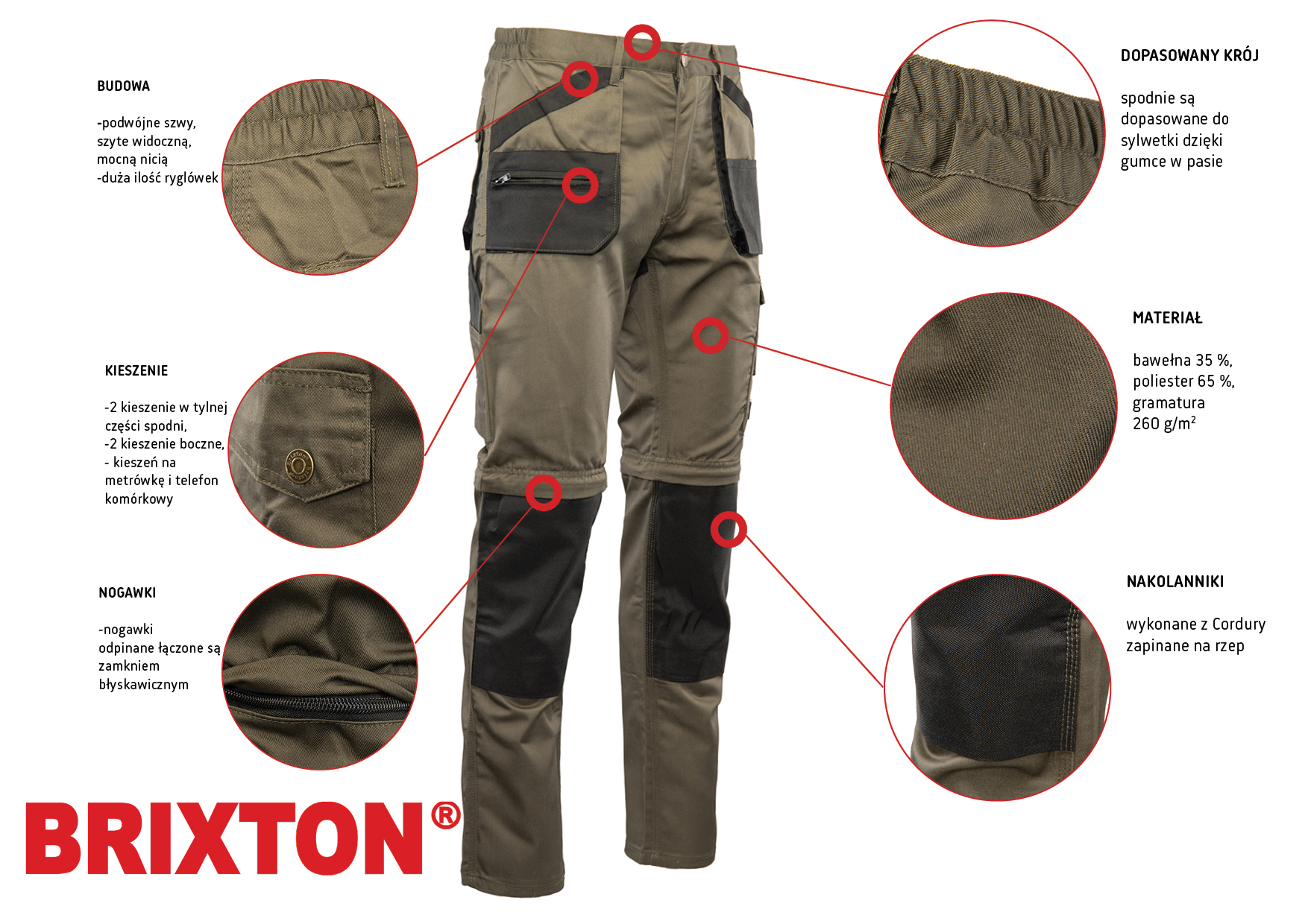 SPODNIE DO PASA KHAKI - ODPINANE NOGAWKI