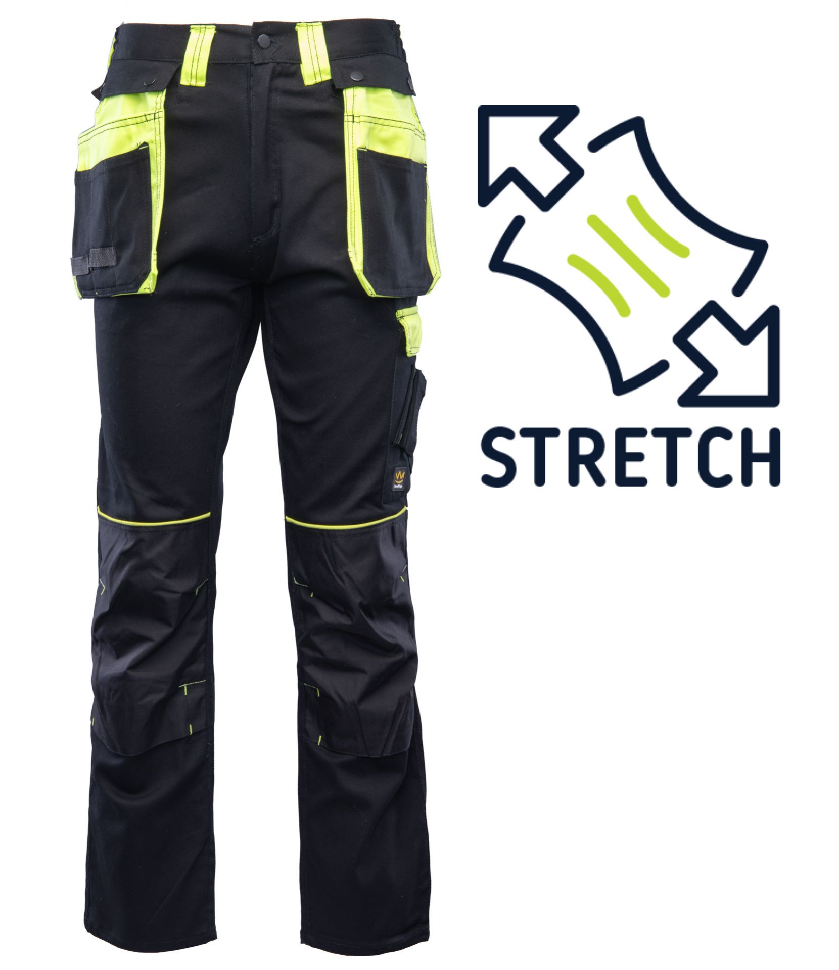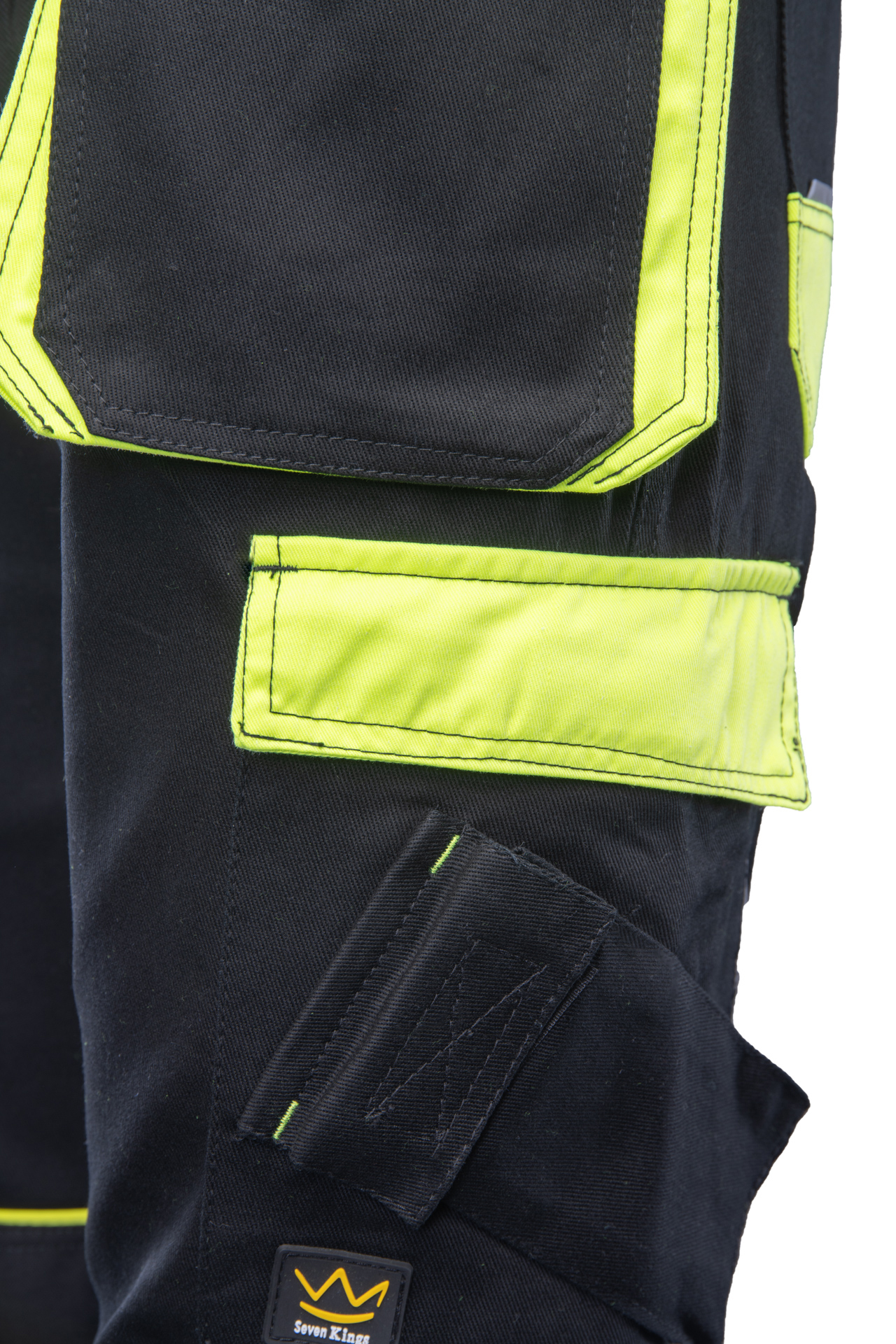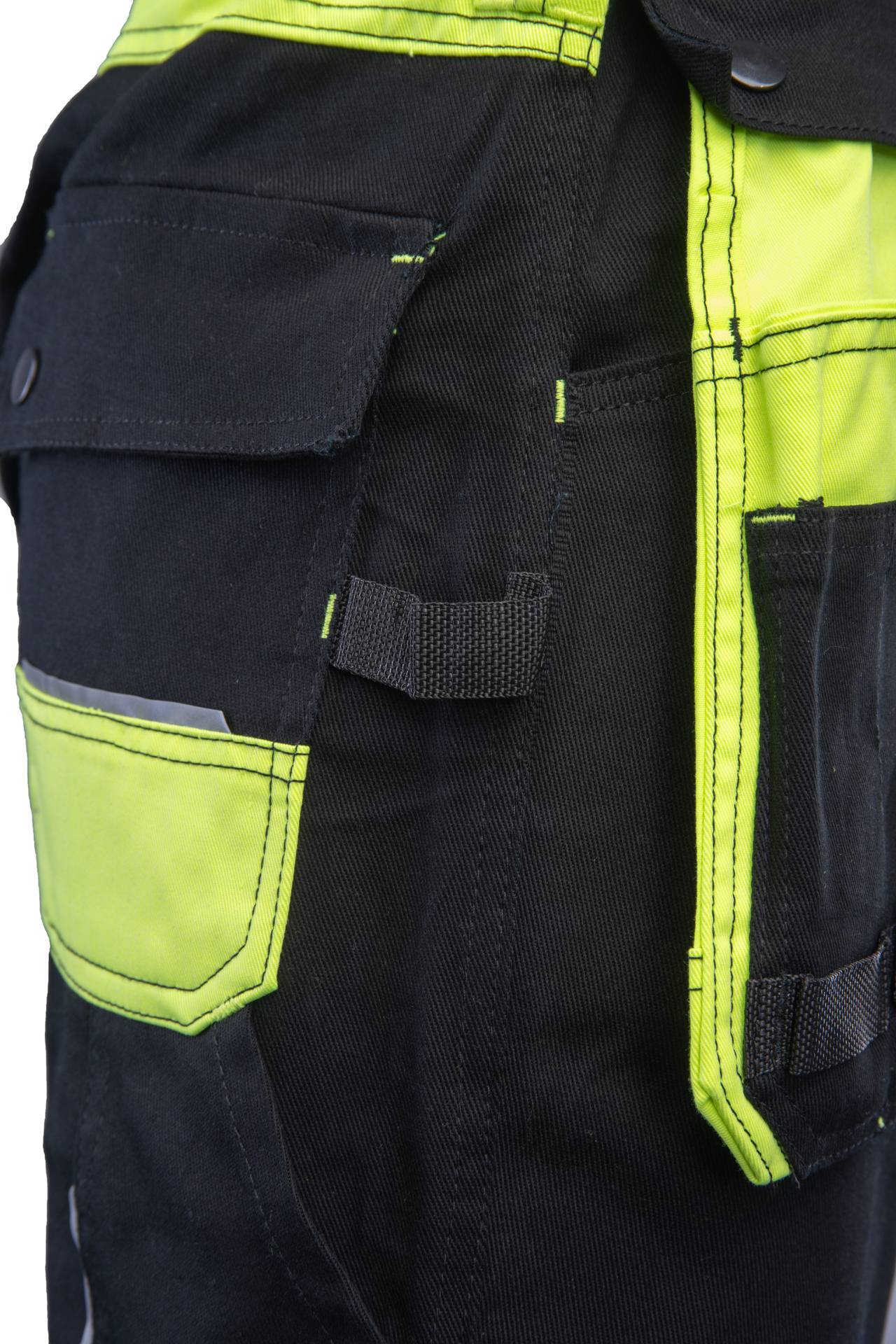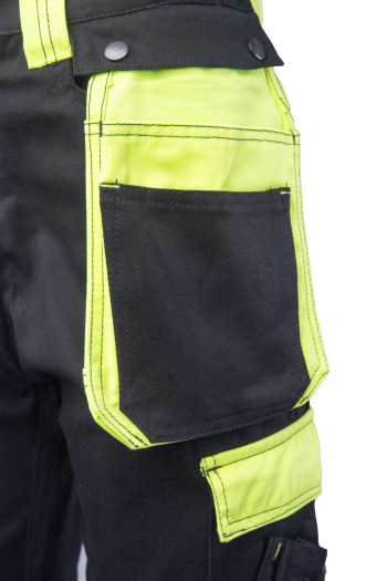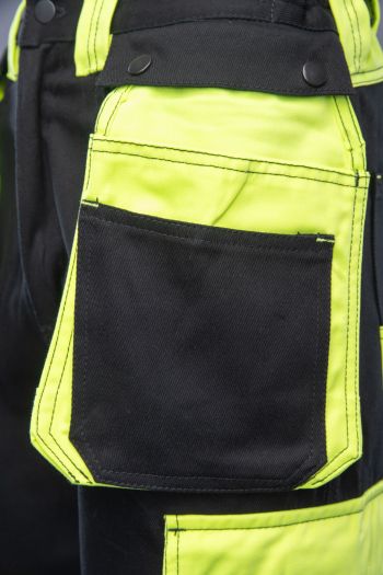 dwie odpinane kieszenie monterskie,