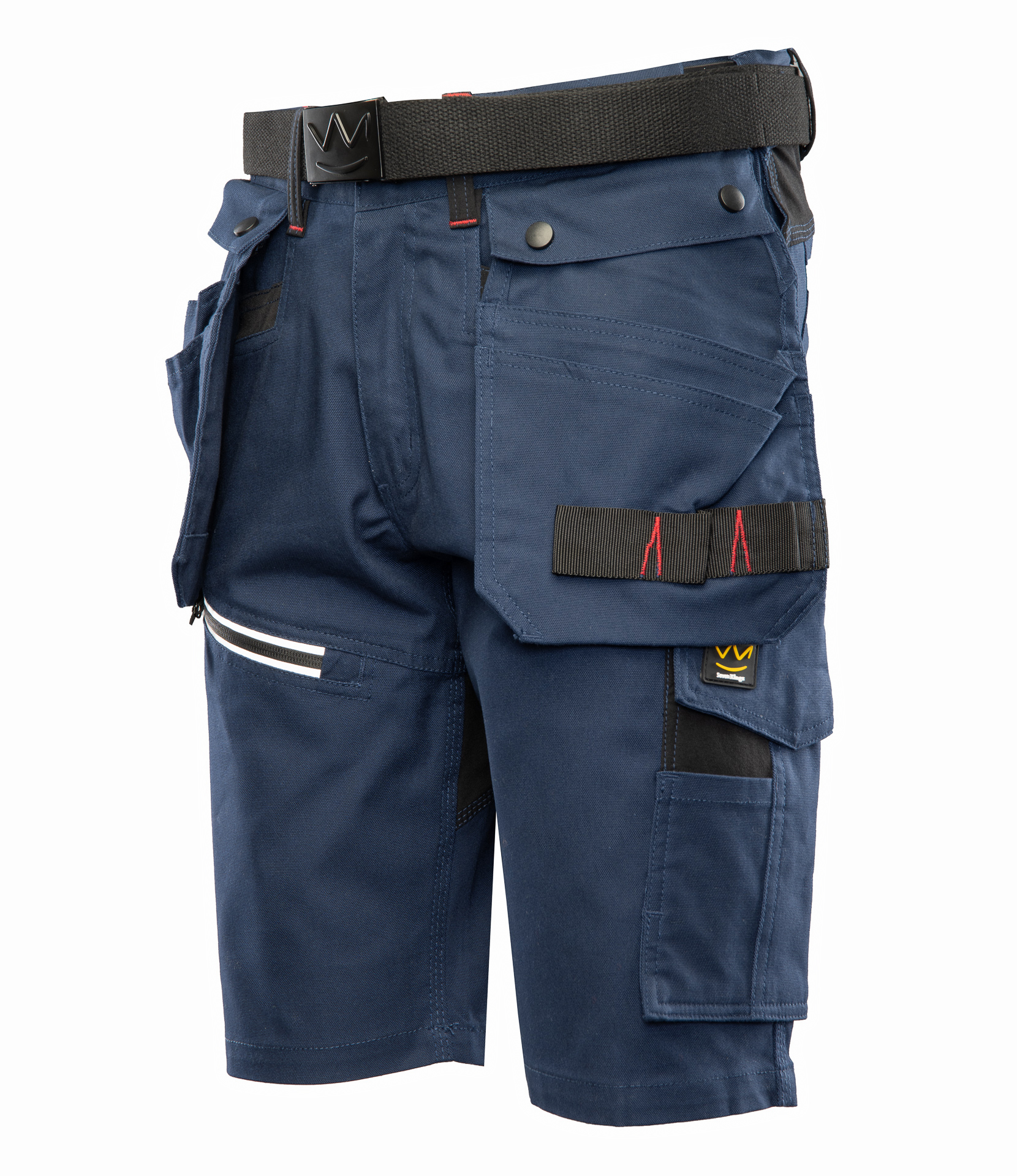 dwie odpinane kieszenie monterskie,